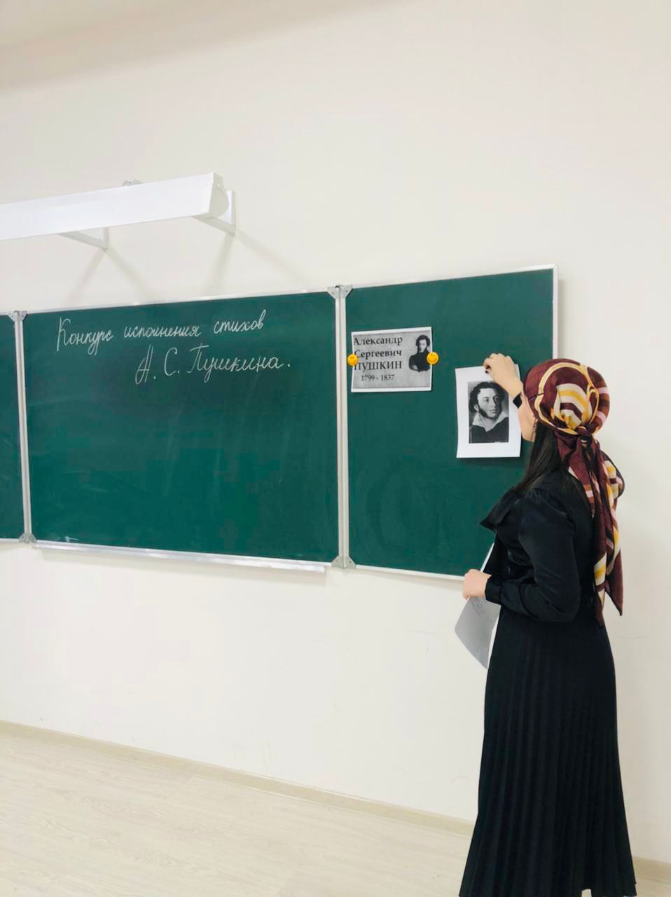 08.11.2022г. в МБОУ «СОШ №4 с.п. Надтеречное им. С.М. Ахметханова» состоялся конкурс «Стихи А.С.Пушкина» среди обучающихся 7 классов.Подготовила и провела учитель русского языка и литературы Тукаева Асет Сайдахмедовна.