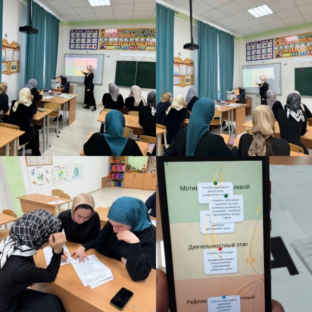 17.02.2024г на базе МБОУ "СОШ №4 с.п.Надтеречное им. С. М. Ахметханова" состоялся семинар-практикум на тему: "Рефлексивно- Оценочный этап учебного занятия".