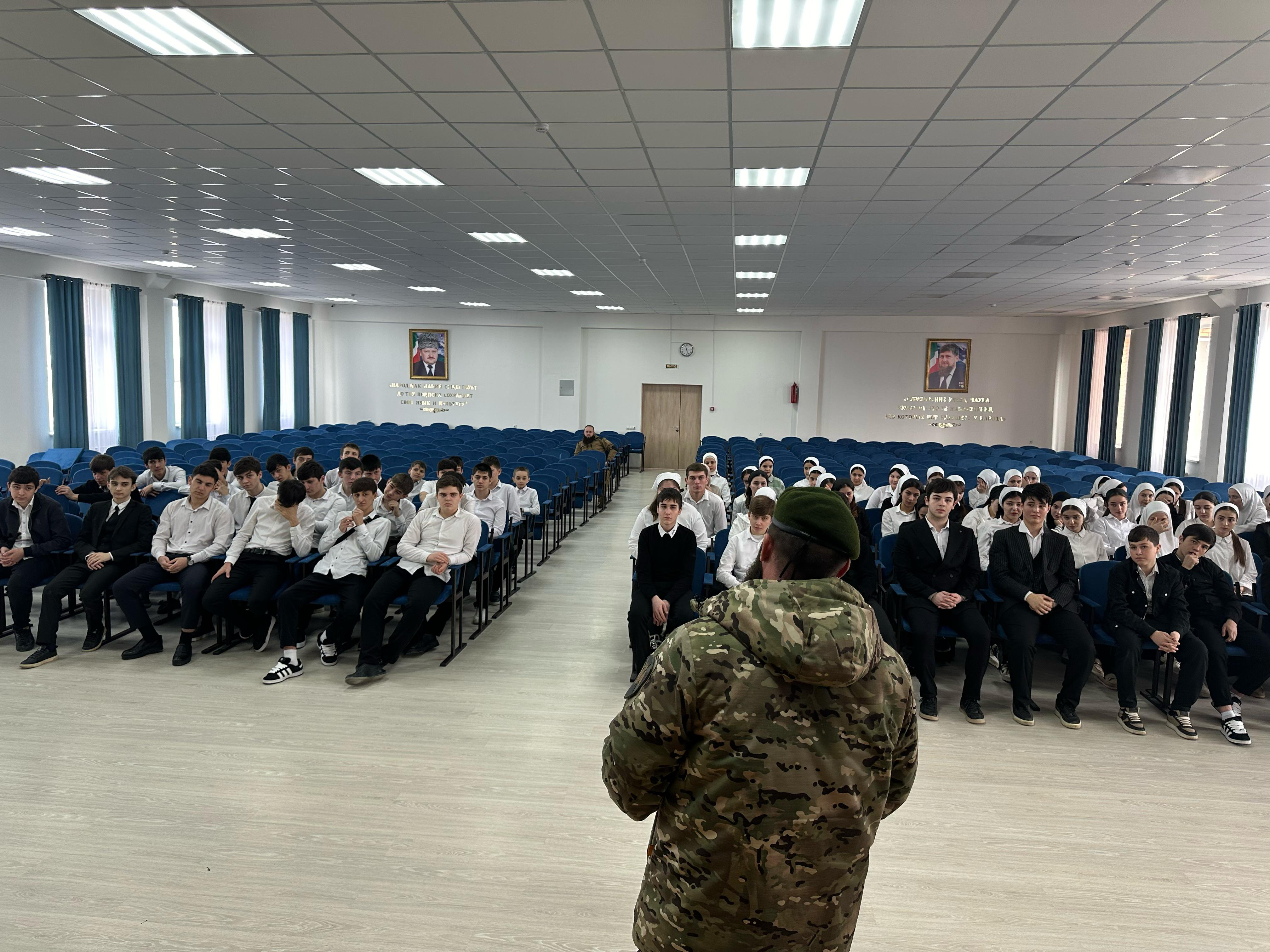 4 марта с обучающимися 10-11 классов была проведена беседа "О профессии военного". Беседу провели служащие Росгвардии. Ребятам было рассказано о востребовательности профессии военного и правилах приёма. Отметили, что количество молодых людей, призванных на срочную военную службу в ряды Вооружённых сил России возросла. Рассказали о том, что профессия военного требует обладать качествами, позволяющими ему с честью и достоинством носить звание защитника Отечества.