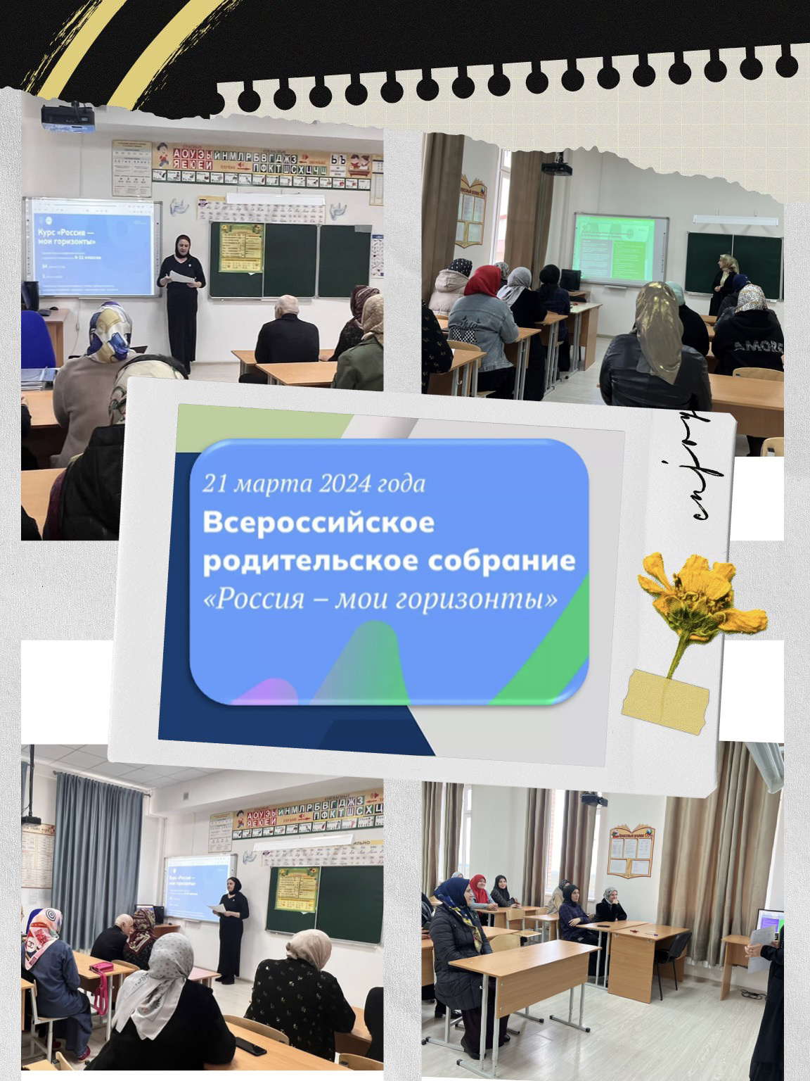 21 марта 2024 года в МБОУ "СОШ√4 с. п. Надтеречное имени С. М. Ахметханова" прошло родительское собрание в 6-11 классах, посвящённое единой модели профориентации школьников "Всероссийское родительское собрание " Россия - мои горизонты".