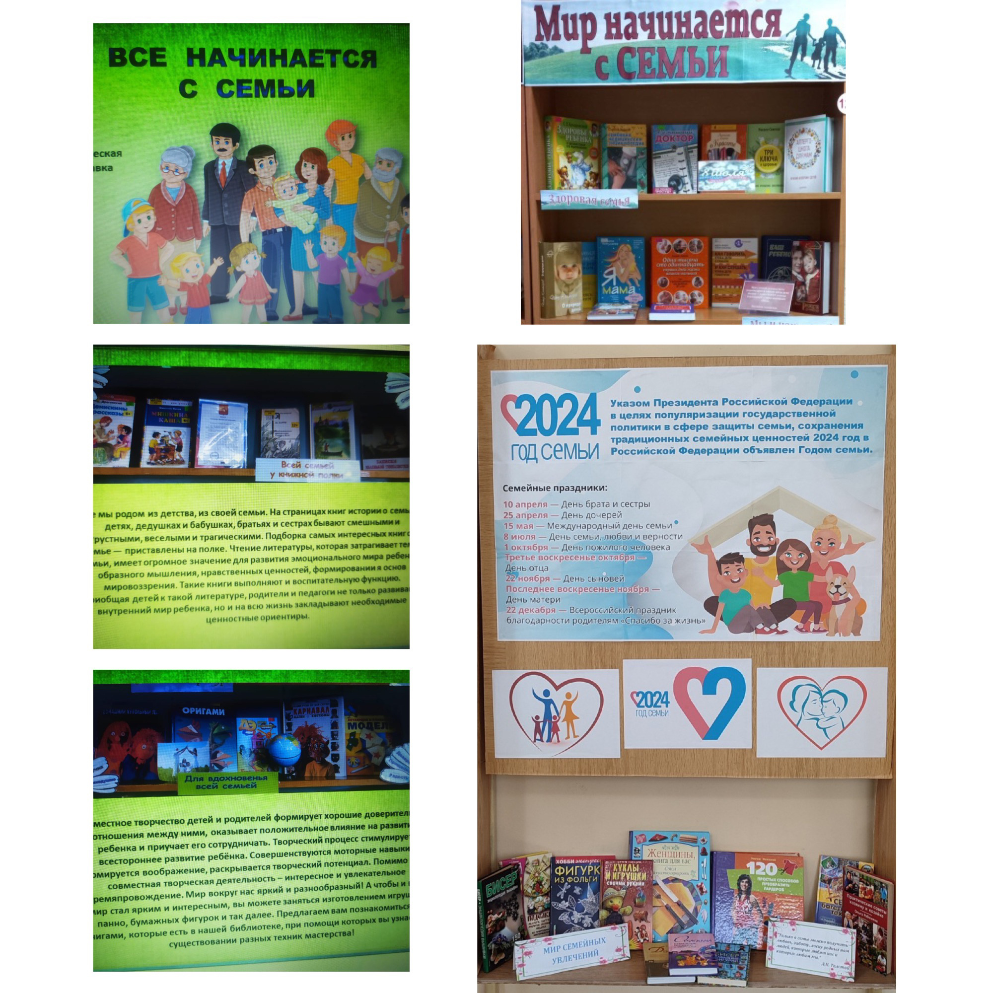 В феврале-марте 2024 года библиотекарем МБОУ "СОШ√4 С. п. Надтеречное имени С. М. Ахметзанова" Индиевой Л. С. была составлена выставка книг и показана презентация посвящённая "Году семьи".