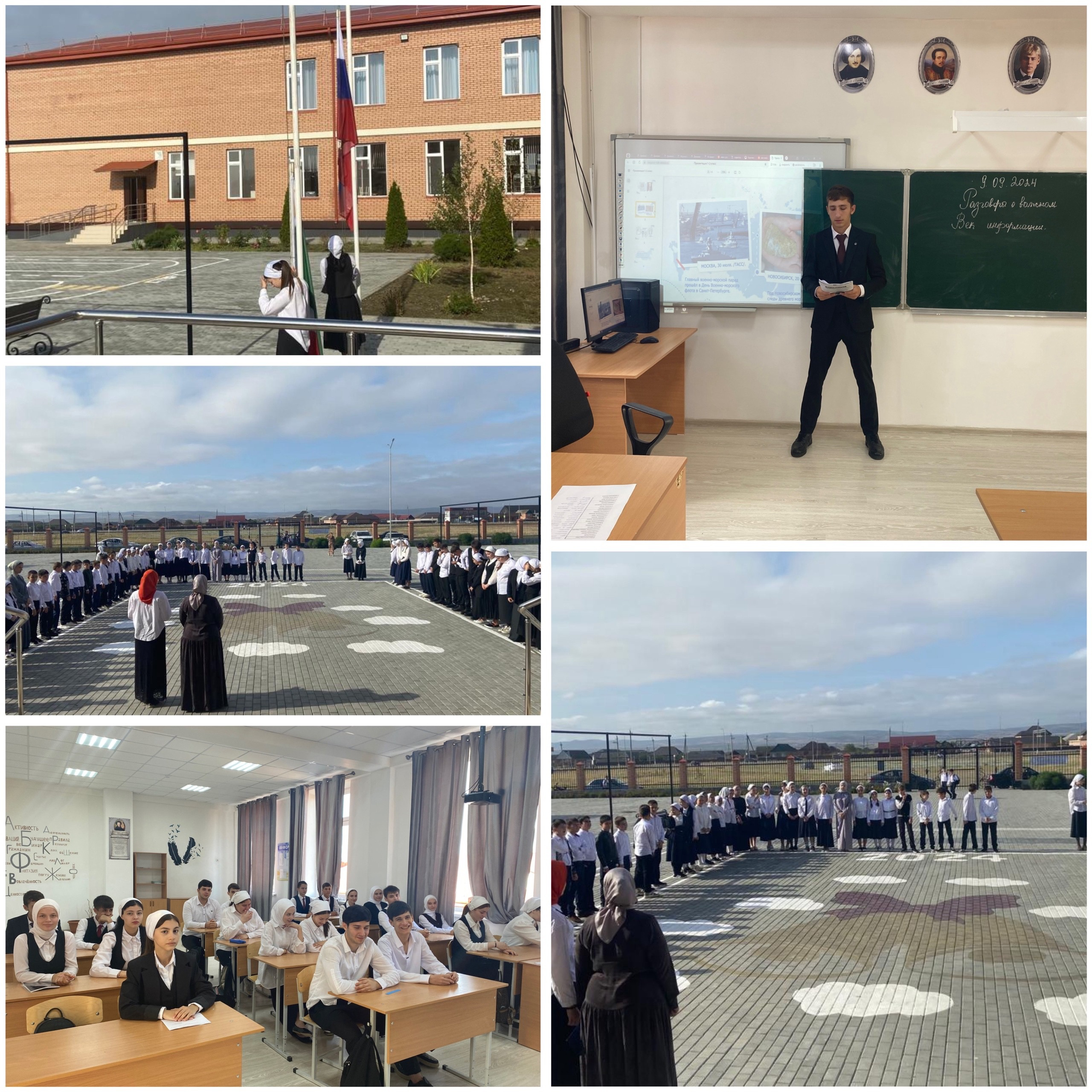 По традиции новая учебная неделя в МБОУ «СОШ 4 с.п.Надтеречное им.С.М.Ахметханова»началась с торжественного поднятия флагов Российской Федерации и Чеченской Республики под исполнение гимнов. Это новая важная традиция в школьной жизни, способствующая укреплению патриотического духа учащихся и педагогов. Исполнение национального гимна вызывает гордость и уважение к истории страны, что является примером правильного духовного и патриотического становления представителей народа! В церемонии открытия торжественной линейки в МБОУ СОШ 4 с.п.Надтеречное им.С.М.Ахметханова» приняли участие обучающиеся старших и средних классов. На линейке присутствовали заместитель по воспитательной работе Абдулкутузова Э.Р., советник директора по ВР Юсупова Х.М.администрация, классные руководители.