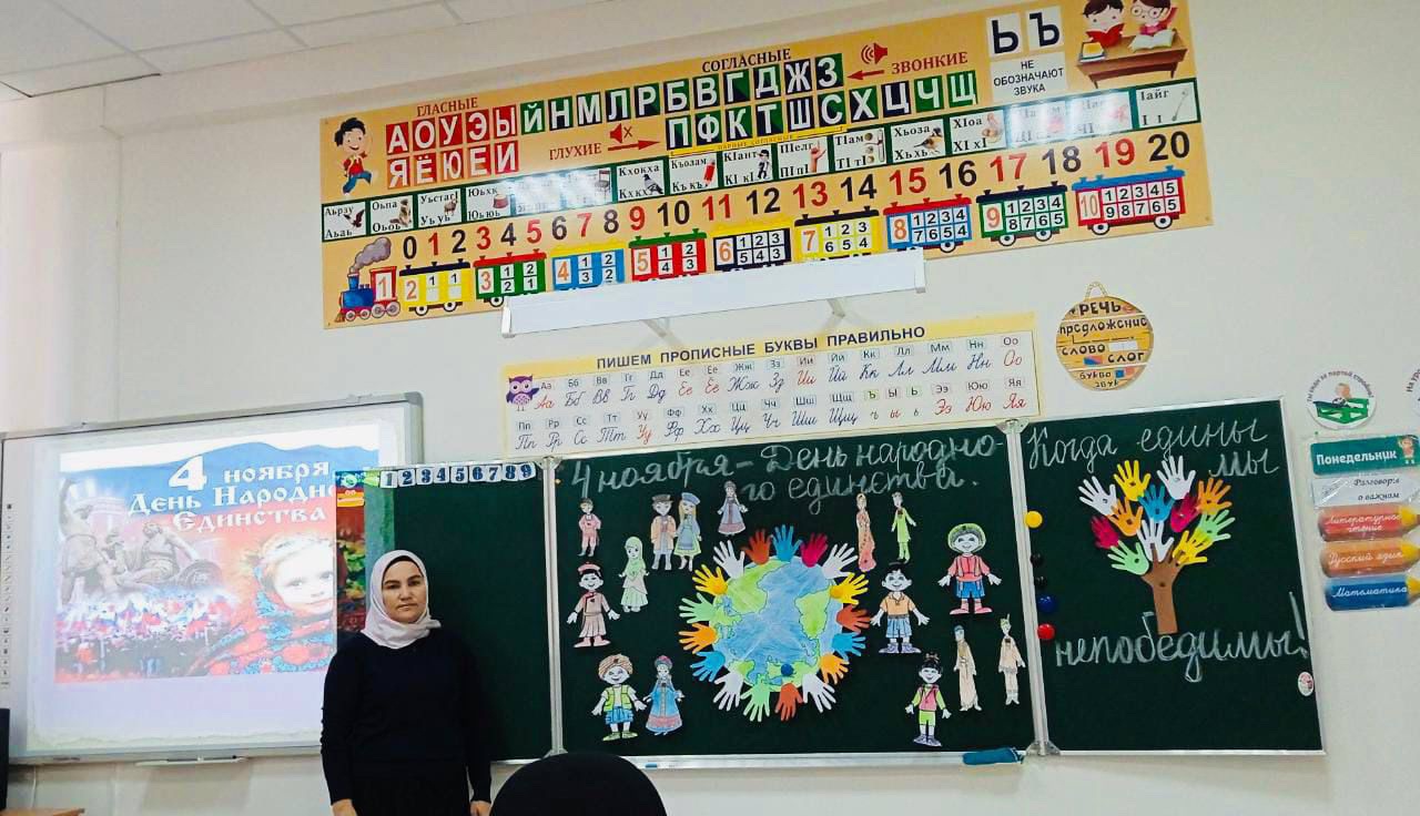 В рамках реализации федерального проекта «Мы вместе» национального проекта «Молодежь и дети» в МБОУ «СОШ №4 с.п. Надтеречное им. С. М. Ахметханова» состоялась акция «Когда мы едины, мы непобедимы». Патриотическая акция была приурочена ко Дню народного единства (4 ноября), цель которой - напомнить о важности сплоченности народа и его исторического наследия.